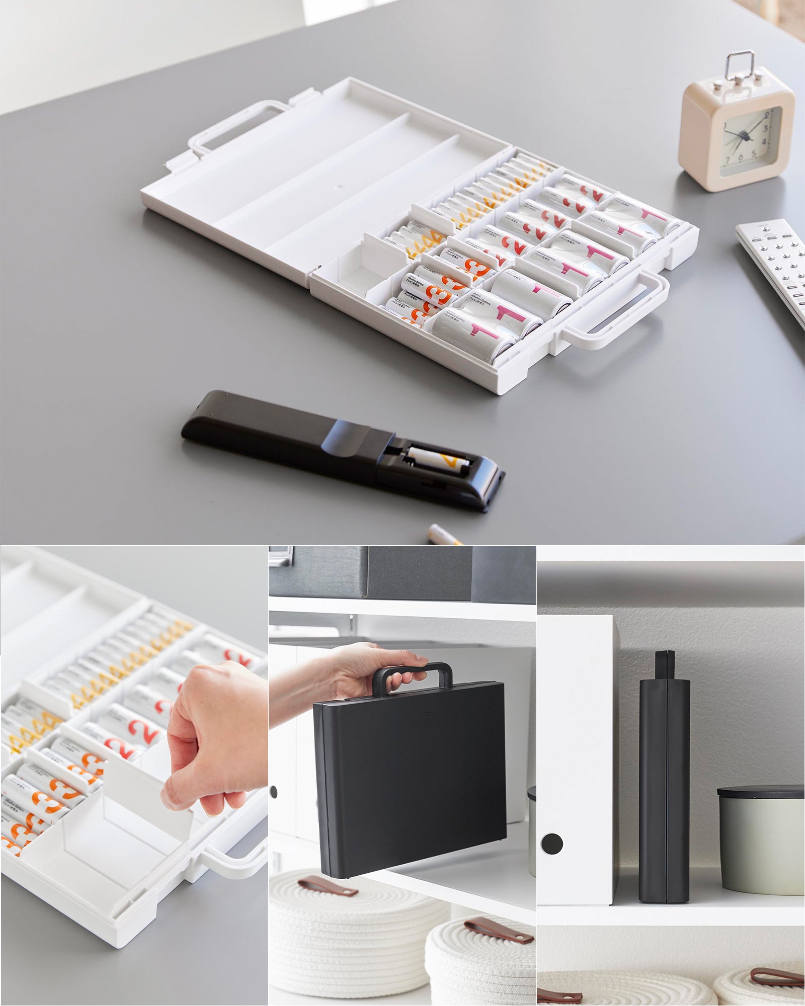 防災用品としても重宝する電池を、スマートに保管できるアタッシュケース型の電池ケースです。