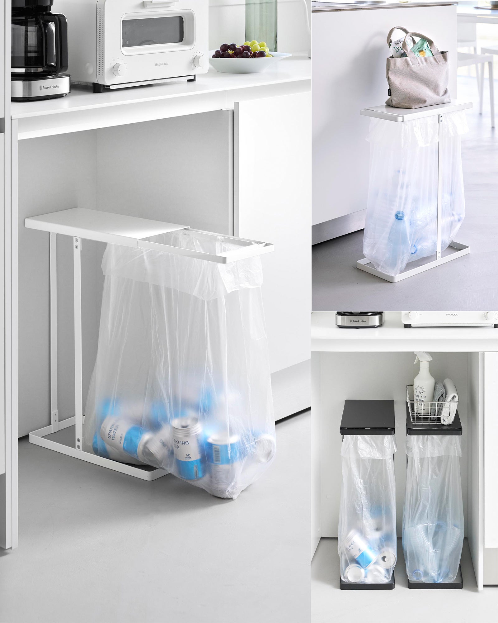 ホルダー内にレジ袋をセットすれば、省スペースでゴミの分別が可能に。