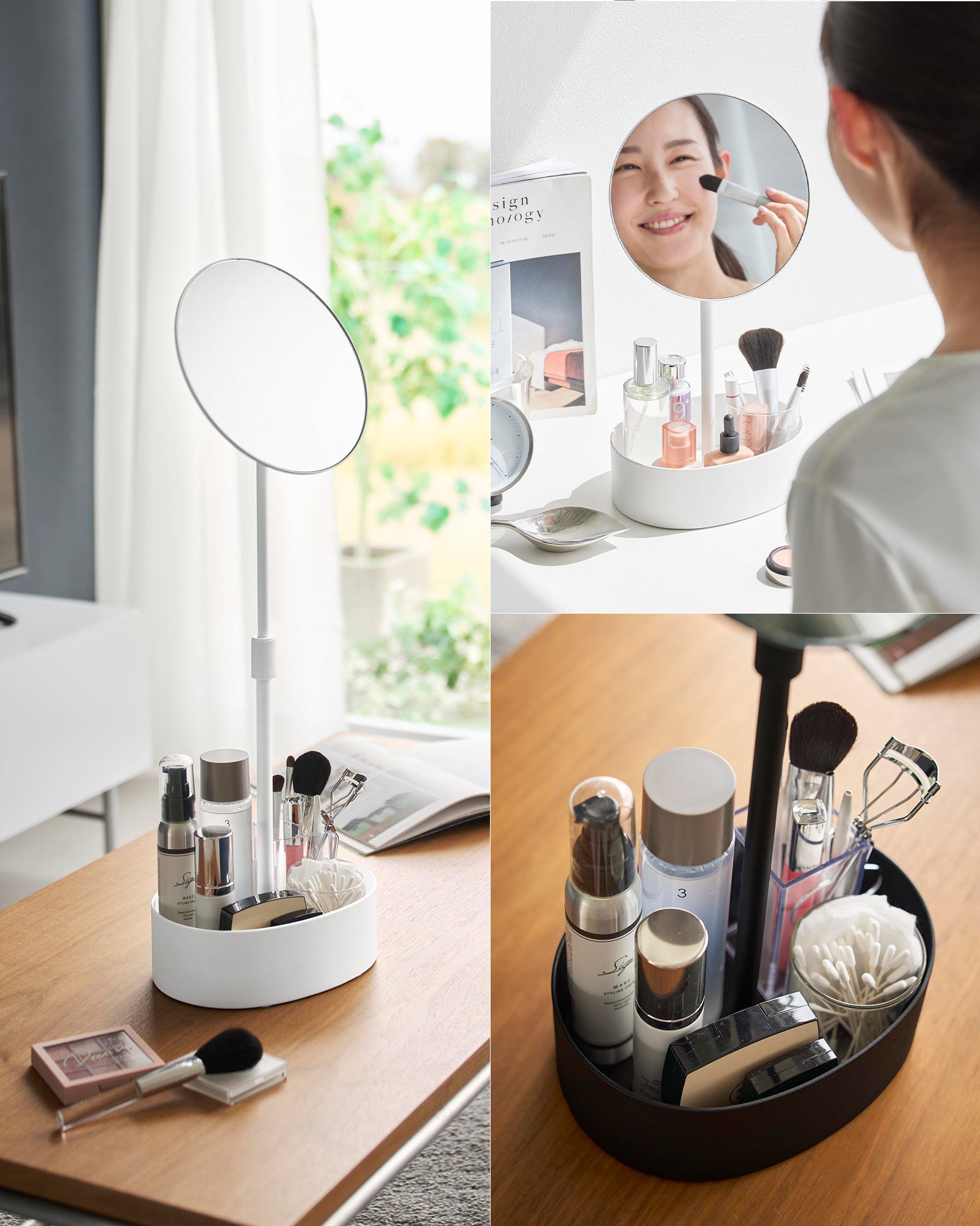 ミラーの高さは、支柱を最大55cmまで伸ばして調節できるため、ローテーブルでも使いやすい設計です。