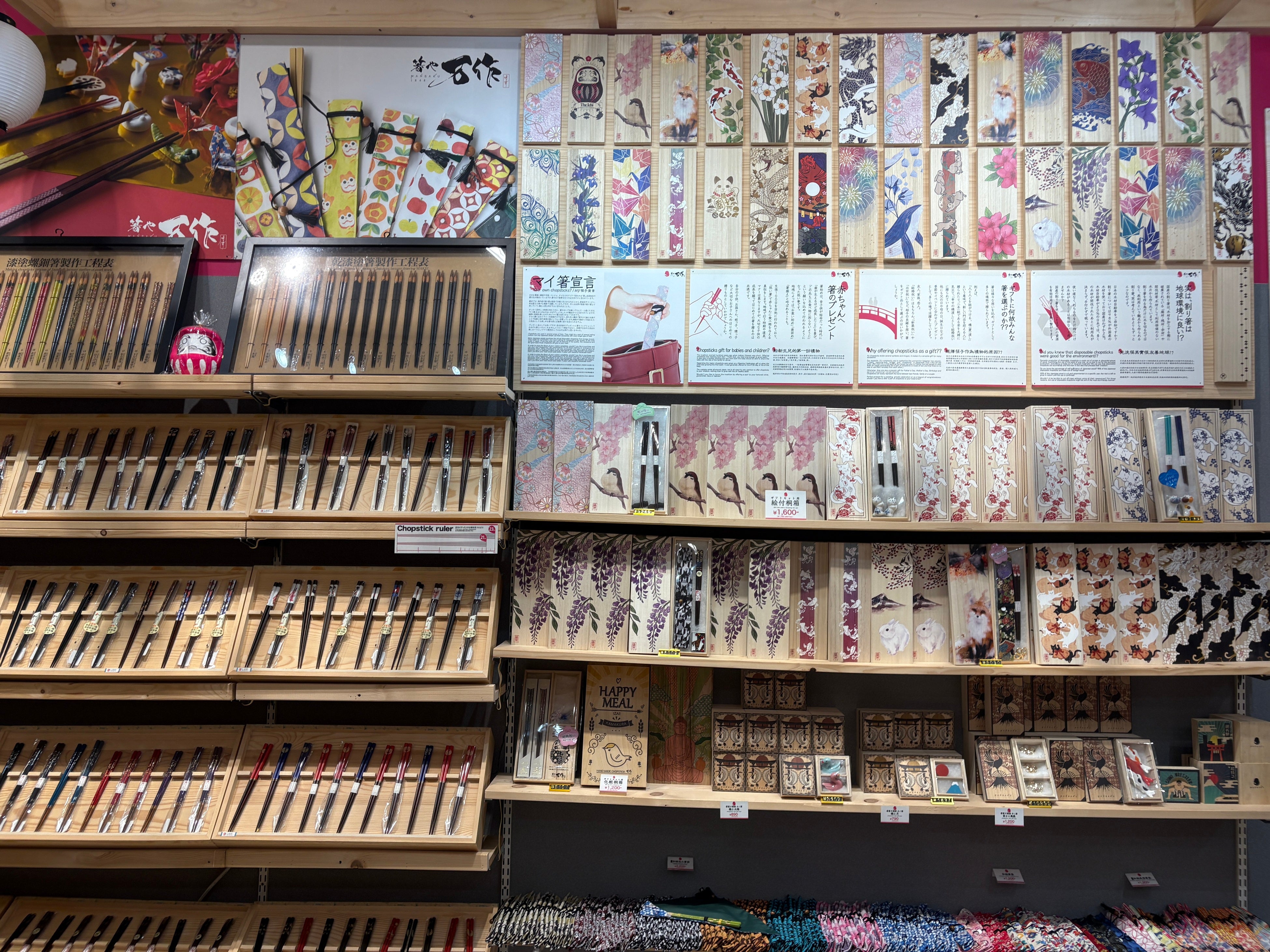 「輪島塗」「津軽塗」「若狭塗」などの塗箸やmade in kyotoにこだわった「京竹箸」「清水焼」「九谷焼」の箸置きなど、『日本の誇る伝統工芸品』に加えて、吉野杉、屋久杉、黒文字などの稀少な木材を原材料に用いた様々な商品が常時800種類以上並びます。