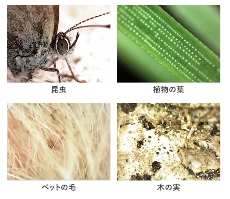 植物の葉脈、虫の羽、紙や布の繊維など、肉眼では見えない世界を拡大して観察できます。