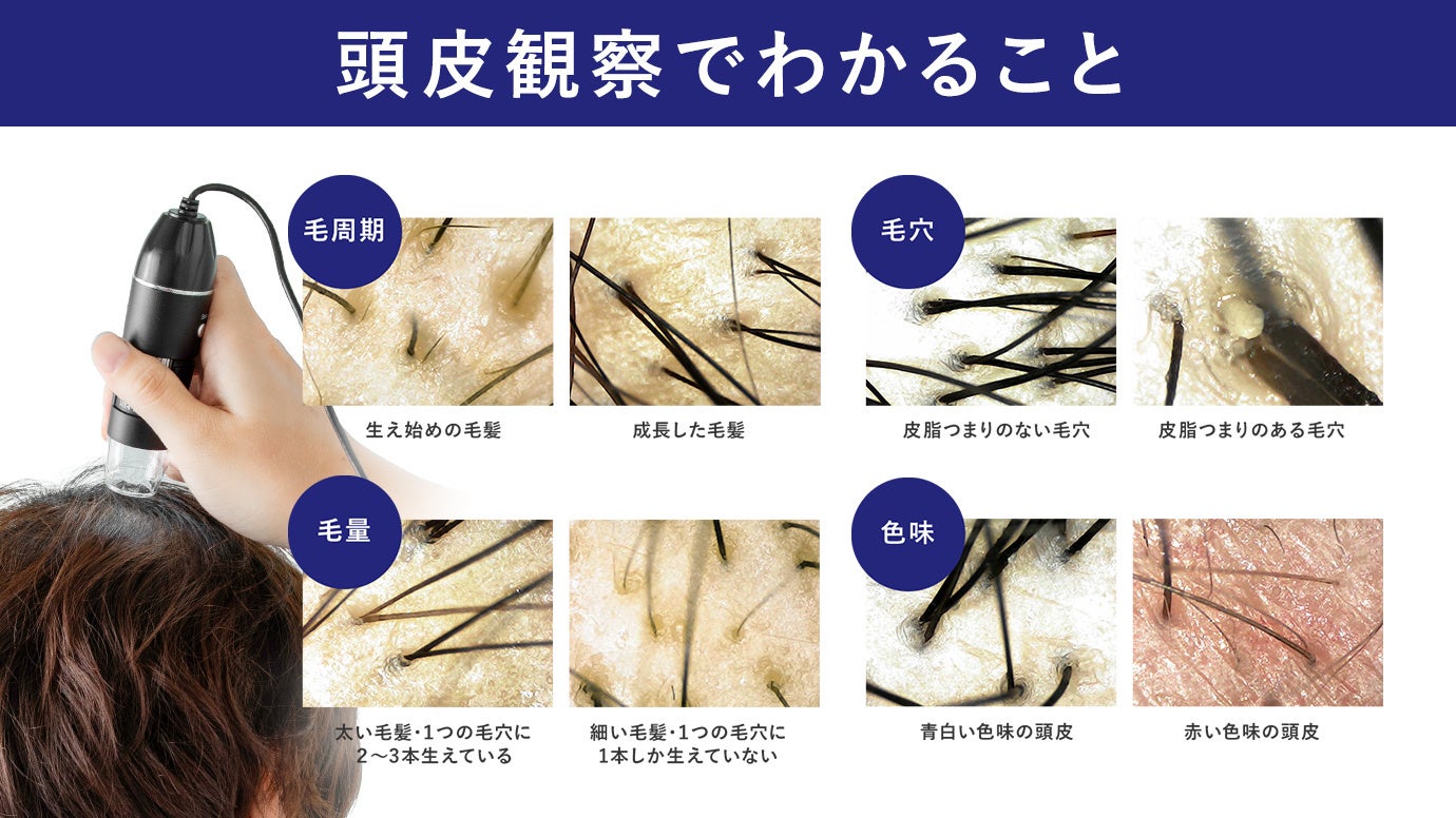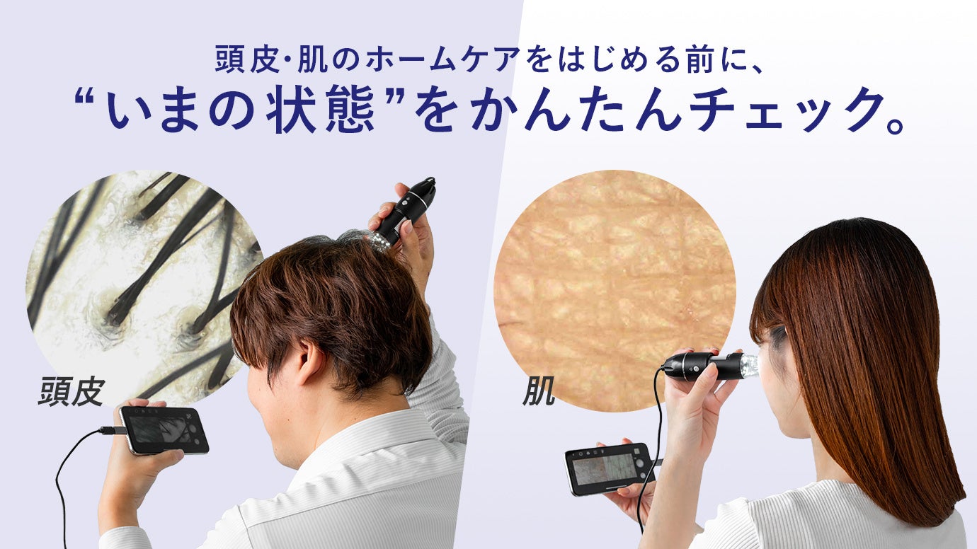 スマートフォンと接続するだけで、自宅で頭皮や肌の状態を手軽に観察できる新型マイクロスコープを発売しました。肉眼では見えにくい毛髪や毛穴、肌のキメの状態を“見える化”し、日々のセルフケアの効果を実感できる画期的なアイテムです。