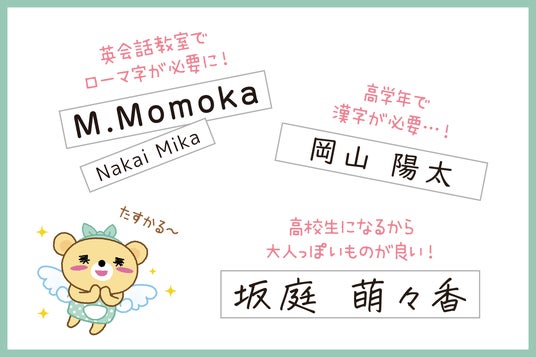 ひらがな・漢字・ローマ字からお好きな文字を入れることができます。「英会話教室でローマ字が必要になった。「小学校の高学年になったので漢字が欲しい!」など、“ちょっとあると便利”というシーンにオススメです。