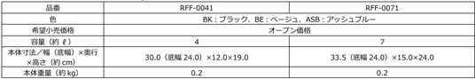 『保冷ランチバッグ(RFF-0041/0071)』仕様一覧