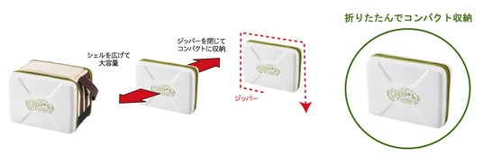 外部からの衝撃に強いシェルプロテクト構造で、瓶類の持ち運びも安心。使用しない時は折りたたんでコンパクトに収納可能。