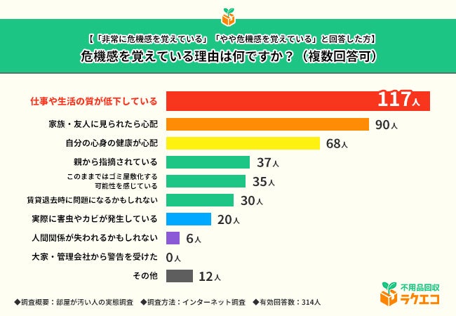 約4人に3人が部屋の汚さに危機感を覚えているようですが、その理由は何でしょうか?