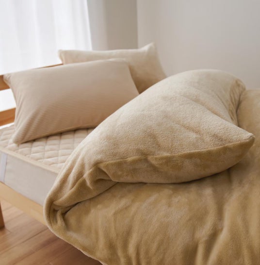 直接肌に触れる面には「スマートヒート(R)」を使用。体から出る水分を吸収し、暖かさへと変換します。表面はあたたかなフリース素材で、頬ずりしたくなるようなやさしい肌ざわり。8か所のホック付きズレ防止テープでしっかり固定してくれるので、布団とカバーがズレることなく快適な睡眠をサポートします。