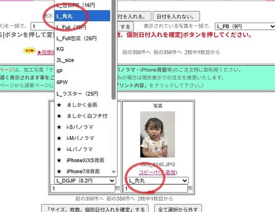 対象:角丸写真 Lサイズ のご注文すべて