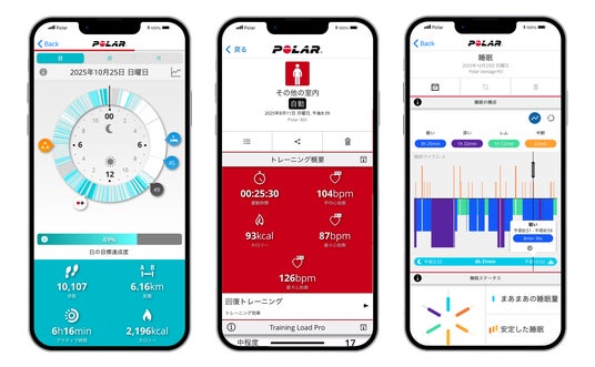 ・ポラールの専用アプリ「Polar Flow」で詳細データを確認可能。