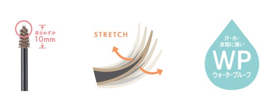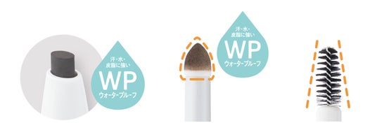 汗・水・皮脂に強いウォータープルーフ、こすれに強いスマッジプルーフ。お湯で簡単に落とせます。