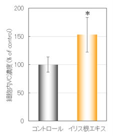 結果1 イリス根エキスが細胞内のビタミンC量を高めることを確認