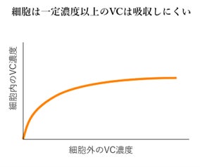 図2 細胞に添加したVC濃度と細胞内VC濃度の関係性のイメージ図