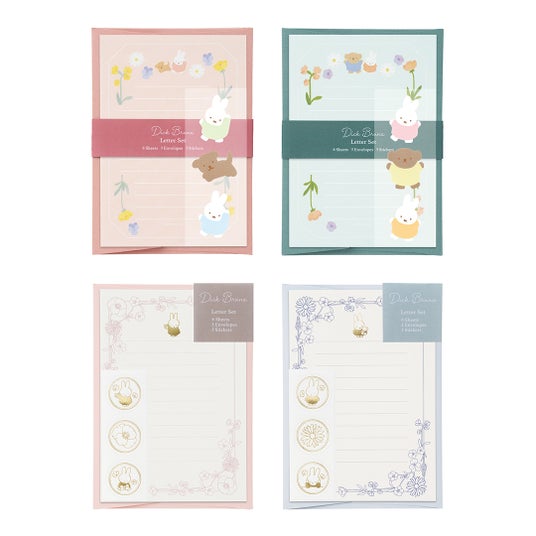 新発売する『ディック・ブルーナ ステーショナリー』第3弾では、ミッフィーたちとお花のイラストが鮮やかに描かれた「ガーデン」と、線画と箔押し加工で上品に表現された「クラシカル」のデザインを楽しめます。アイテムは、レター、ミニメッセージ、付箋、下じきの全4種です。