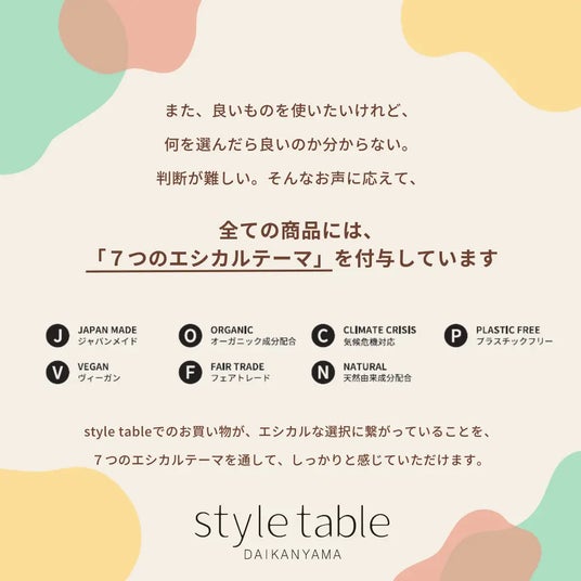 style tableが大事にしてる7つのエシカルテーマ