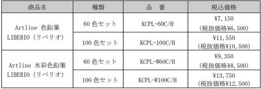 滑らかな描き心地と鮮やかな発色が特長の「Artline 色鉛筆 LIBERIO(リベリオ)」と、水彩画のような表現を可能にする「Artline水彩色鉛筆 LIBERIO(リベリオ)」の2種をラインナップ。それぞれ60色セットと100色セットを2026年1月5日(月)より発売します。