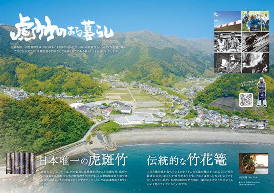 中でも注目は、高知県須崎市安和地区の「虎竹の里」の風景を紹介するページです。高知県須崎市特産の虎斑竹(とらふだけ)が自生する地域であるこの土地の自然の美しさを、迫力ある写真で紹介。竹虎のルーツである虎竹文化と、その背景にある風土や歴史を感じていただける特集となっています。