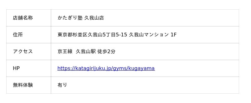 ▶︎https://katagirijuku.jp/gyms/kugayama