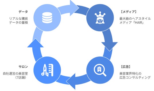 この一気通貫の事業構造により、オンライン(メディア・広告)とオフライン(サロン・購買)を融合したマーケティング支援が可能です。