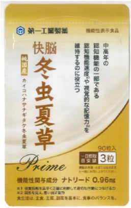 『快脳冬虫夏草』は、カイコ蛹で生育した純国産の「カイコ冬虫夏草(キノコ)」を原料とする機能性表示食品です。機能性関与成分「ナトリード」を含み、認知機能維持をサポートします。