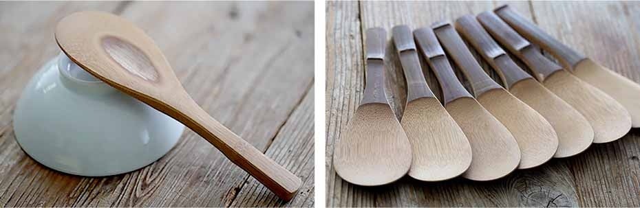 また、竹の特性である軽さとしなやかさを活かしつつ、強度を損なわない絶妙な厚みに仕上げており、ご飯をふんわりとやさしくすくえる使い心地にも定評があります。節の位置には個体差がありますが、それも天然素材ならではの魅力。一つひとつに異なる表情があり、手に取るたびにあたたかみを感じていただけます。