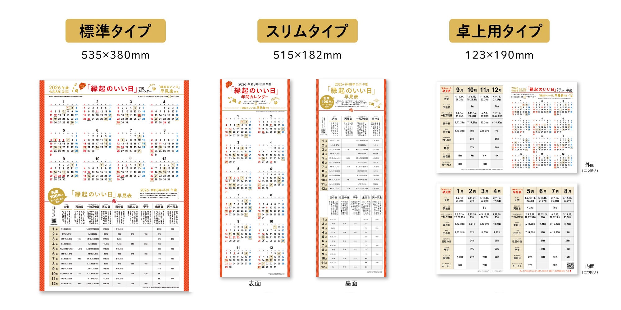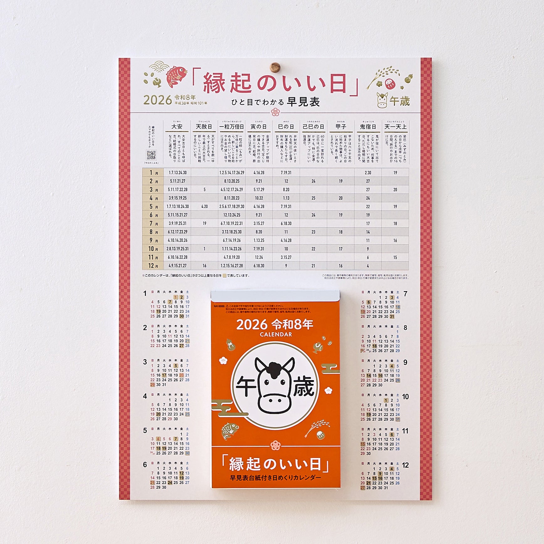 また、新日本カレンダーでは、現在販売中の2026年版のカレンダー商品に、特別付録として「縁起のいい日 年間カレンダー」を付けてご提供しています。