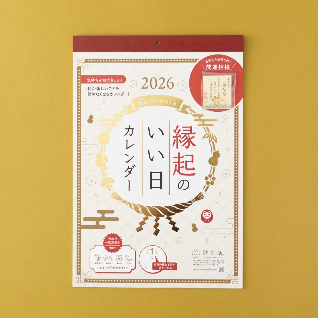 新日本カレンダー株式会社近年、天赦日や一粒万倍日など「縁起のいい日」への関心が高まっています。2025年も残すところ20日余り。来たる2026年の開運日をご紹介します。