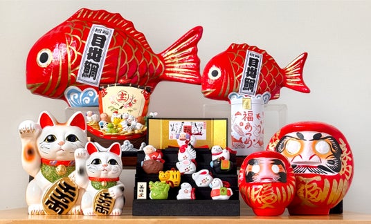 カレンダーには、1年のはじめに使い始める“縁起物”という側面もあります。そこで景品には、昔から福を招く象徴とされる日本の縁起物を集めました。「招き猫」「達磨(だるま)」「目出鯛(めでたい)」など、新しい一年の幸せを応援してくれる、見て楽しい・飾ってうれしいアイテムを揃えました。