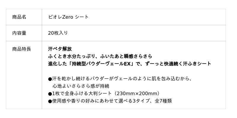 汗のベタつき不快から解放する「ビオレZero シート」改良新発売