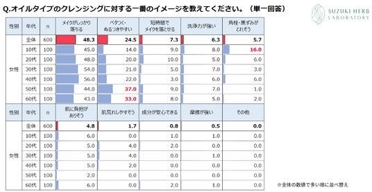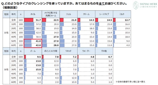 オイルタイプが51.7% 「メイク落ち」は共通も、10代と50代・60代で分かれる評価 10~60代女性600名に聞く クレンジングに関する調査