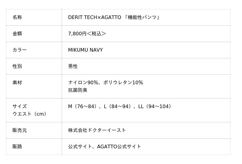 株式会社ドクターイースト(本社:東京都中央区銀座、代表取締役社長:三山孝仁)は、はくだけで骨盤ととのう「DERIT TECH(以下、デリットテック)」の「機能性パンツ」とゴルファー堀川未来夢プロのゴルフウェアブランド「AGATTO(アガット)」がコラボレーションした「DERIT TECH×AGATTO 機能性パンツ(男性用/1枚7,800円〈税込〉」を2025年12月15日に公式サイトおよび「AGATTO」公式サイトにて数量限定にて新発売します。