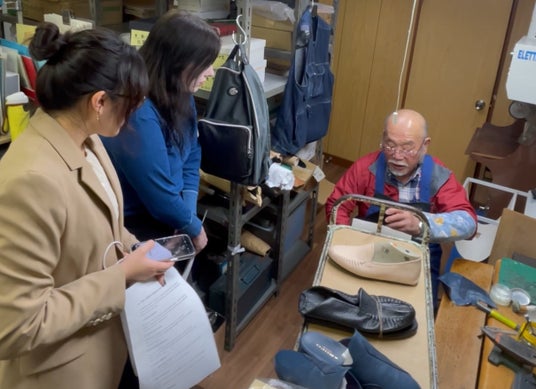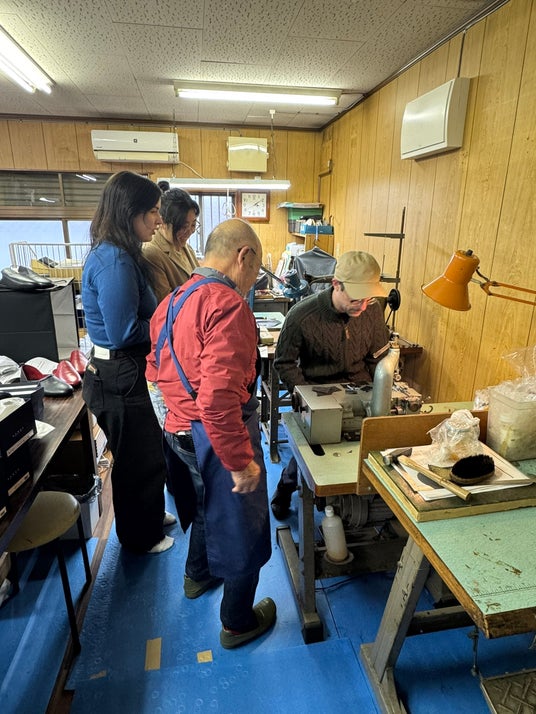 革の加工工程を間近で学ぶ取材風景も公開されています。