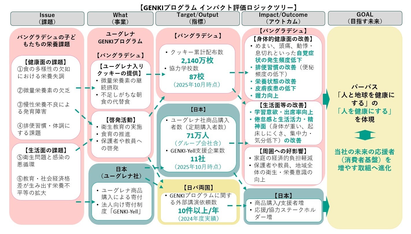 株式会社ユーグレナ(本社:東京都港区、代表取締役社長:出雲充)および euglena GG Ltd. ※1(本社:バングラデシュ、共同最高経営責任者:大西志麻里、以下「グラミンユーグレナ社」) は、バングラデシュの子どもたちへの栄養支援活動「GENKIプログラム」の11年間の集大成として、成果をまとめたインパクト評価レポートを初めて公表しました。