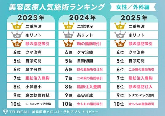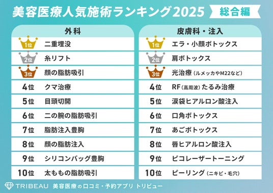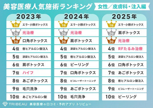 【トリビュー】美容医療の2025年人気施術ランキングおよび2026年トレンド予測を発表