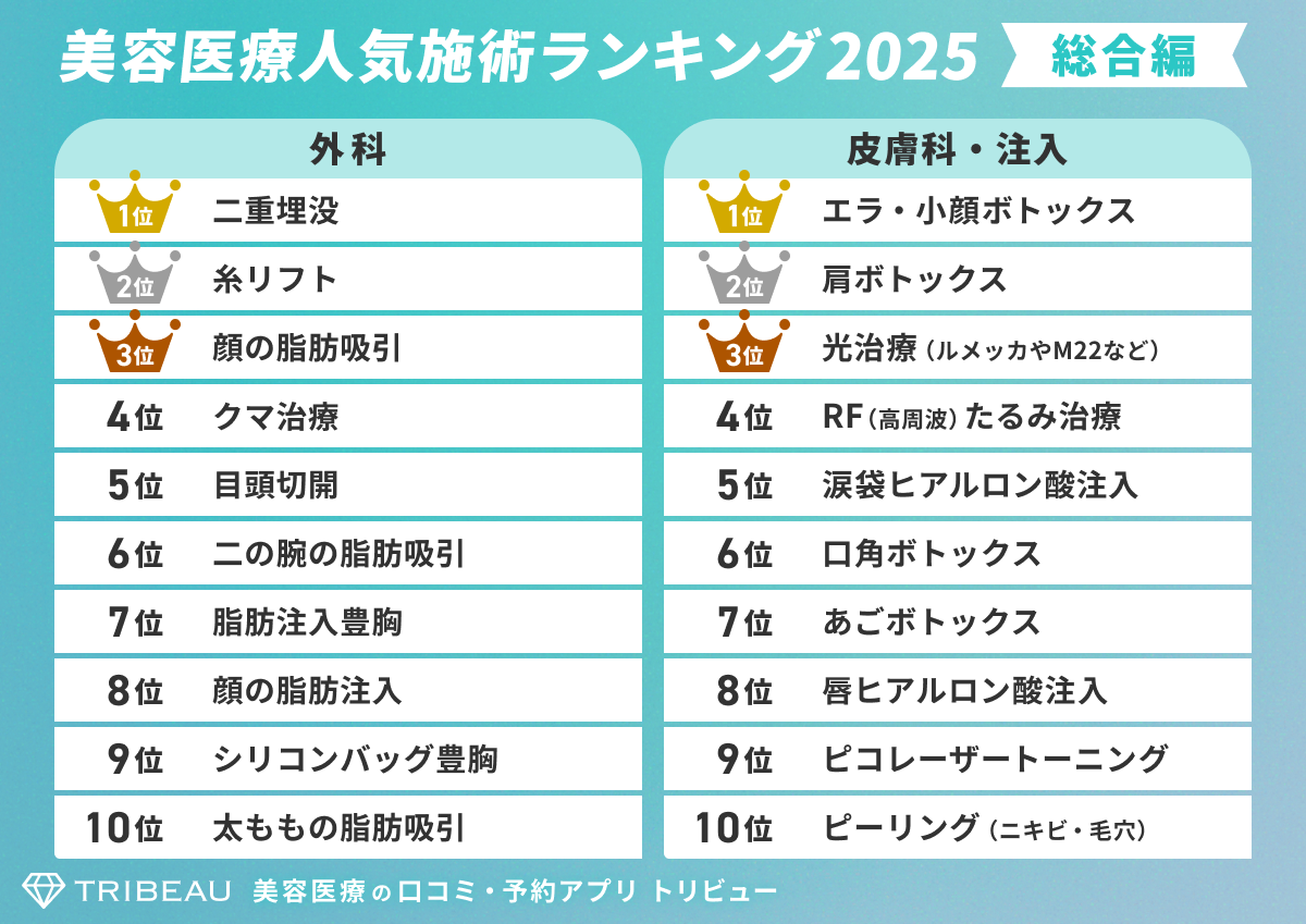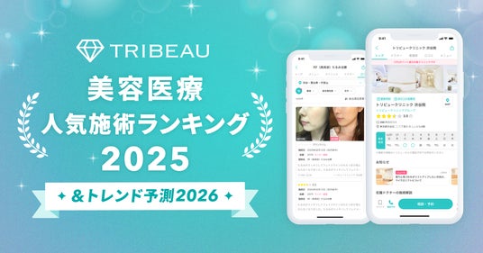 国内最大級の美容医療口コミ・予約アプリ『トリビュー』を開発・運営する、株式会社トリビュー(本社:東京都渋谷区、代表取締役:⽑迪)は、『トリビュー』における予約データをもとに、2025年美容医療人気施術ランキングおよび2026年トレンド予測を発表いたします。