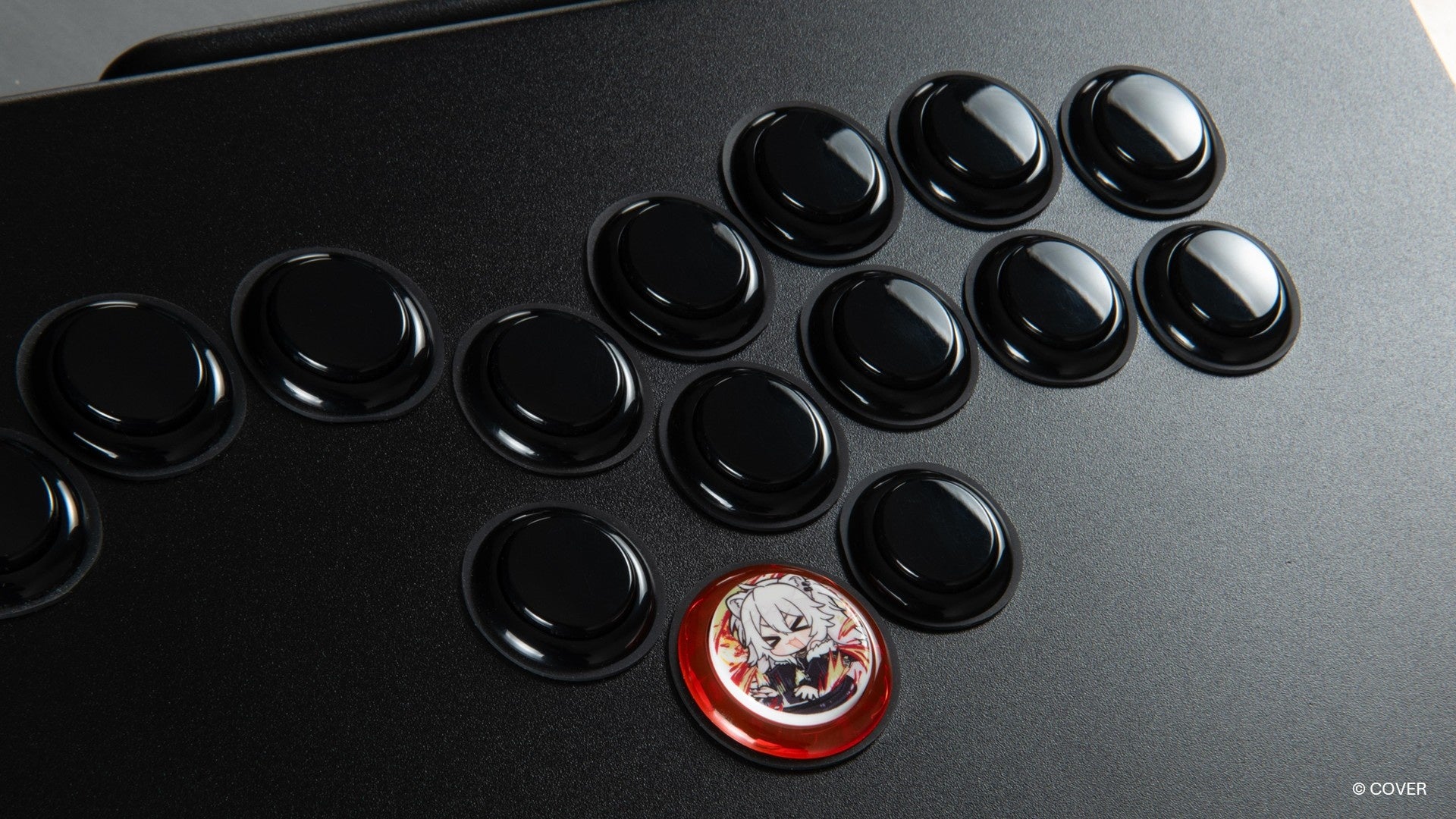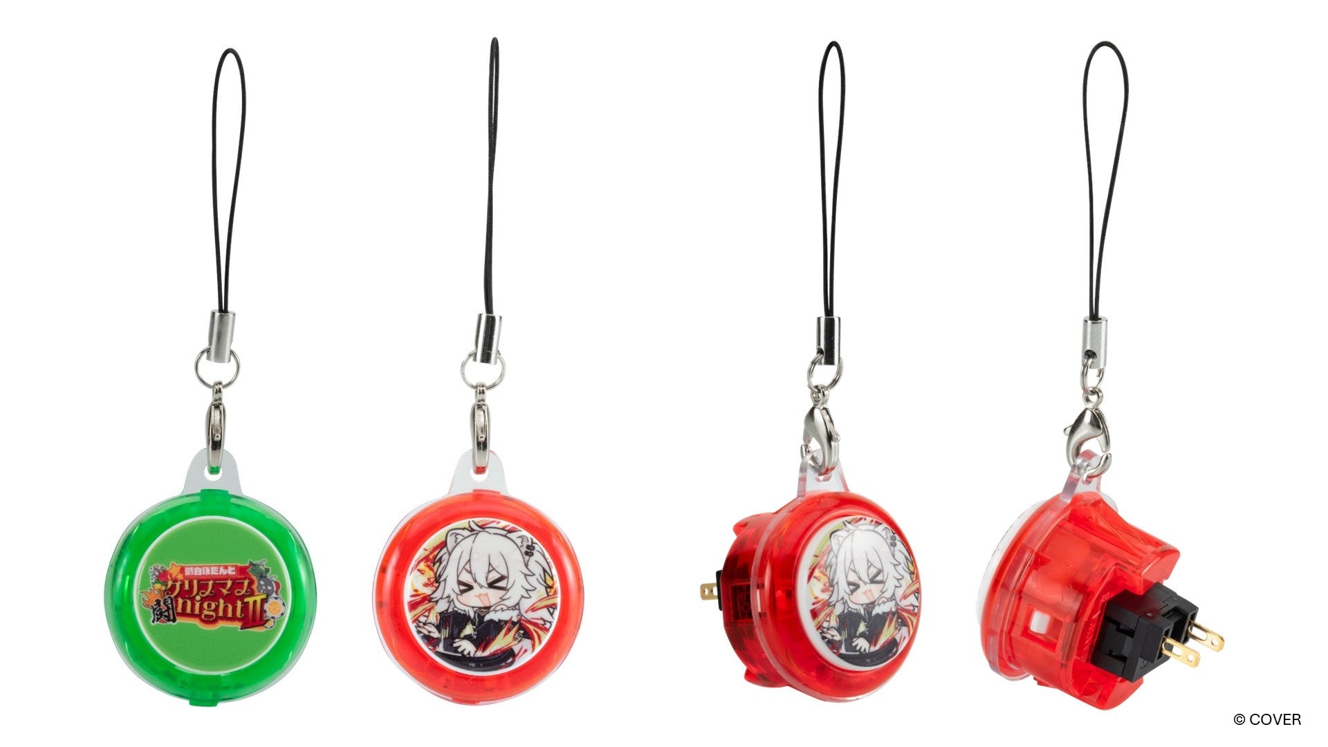会場では、三和電子製の30φアーケードコントローラーボタンに本イベントのために描き下ろされたイラストやロゴをあしらった「獅白ぼたんボタン(赤 / 緑)」を販売。アケコンの交換ボタンとしてはもちろん、ストラップとしても楽しめる2WAY仕様で、飾って楽しむこともできるアイテムです。