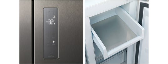 6BOX冷凍庫の右上には、食材の熱を直接吸収するアルミプレート付き急冷凍専用トレーを配備。-30℃以下の冷風が通風口から直接当たる設計で、効率よく冷凍できるため鮮度や風味、食感を失わずに冷凍したいときに便利です。さらに、冷気は冷凍室全体にも行き渡るため、作り置きや買いだめした食品もまとめて素早く冷凍できます。(※3)。