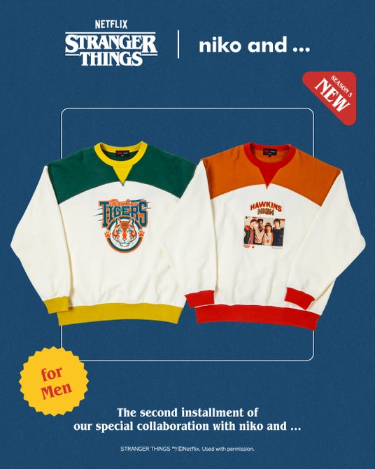 第2弾のコラボレーションでは、シーズン5の最終章を盛り上げるべく、たくさんのコンテンツを「niko and ...」からご用意しております。シーズン5のアートワークを中心にデザインに落とし込み、レトロポップなデザインで「niko and ...」が展開するウィメンズ、メンズ、生活雑貨、飲食の全カテゴリーから商品をラインアップしたスペシャルな内容をお届けいたします。