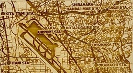 ▲マグネット/伊丹空港 スクエアの地図デザイン 主要な駅など詳細な地図が刻印されています
