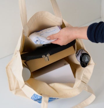 ▲トートバッグダークグレー/POP-UP限定のクリーム色生成り