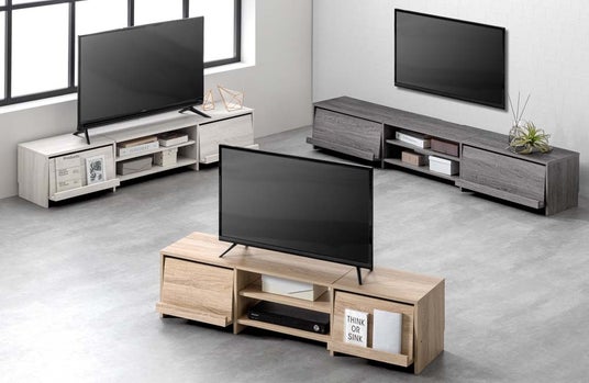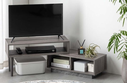 ユニットタイプのテレビ台やお部屋の角にも置ける伸縮式のテレビ台、魅せる収納と隠す収納を合わせたテレビ台の3モデルとなります。デザインは勿論、サイズや収納等一人暮らしからご家族まで幅広くご使用いただけるテレビ台になっています。