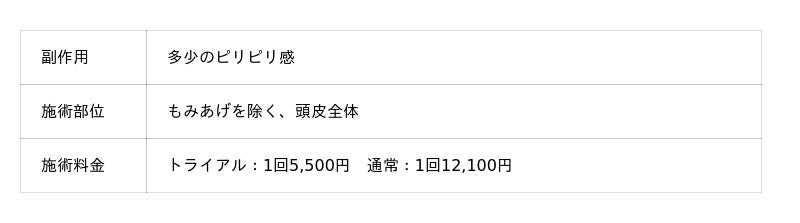 頭皮の皮脂は顔の2倍あります。水流と吸引の力を使い、シャンプーでは落としきれない頭皮の毛穴奥の汚れやアブラを徹底的に吸引洗浄します。頭皮のかゆみや赤み、フケ、臭いを水流のメカニズムと乳酸ピーリングで洗浄し、スカルプエッセンスを塗布することで頭皮のターンオーバーを促し、正常な頭皮環境へ導きます。