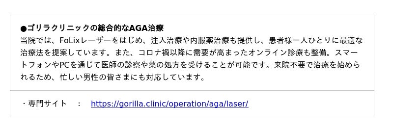■ゴリラクリニックの薄毛・AGA治療(https://gorilla.clinic/operation/aga/ )