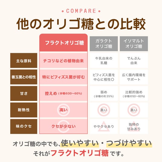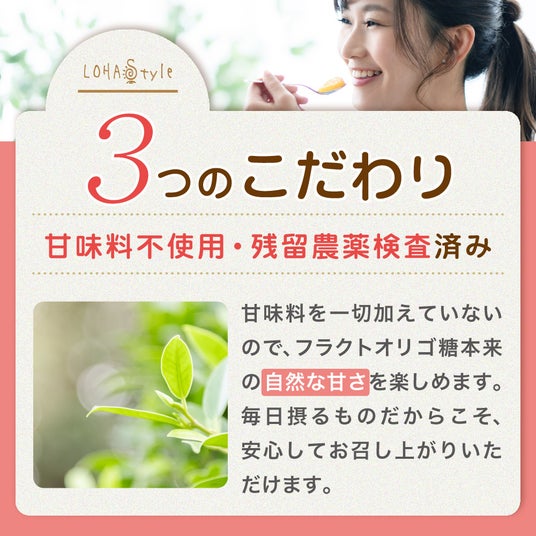 甘味料を一切加えてないので、フラクトオリゴ糖本来の自然な甘さを楽しめます。