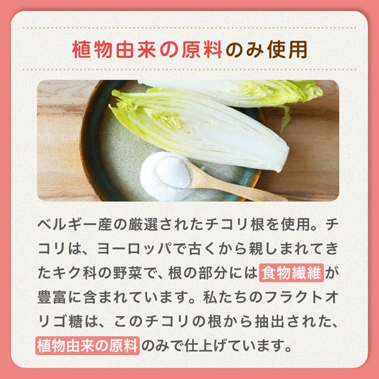 このチコリの根から抽出された、植物由来の原料のみで仕上げています。