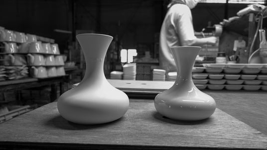 今回は、SIBARISTの美しいデザインを磁器で忠実に再現するため、陶磁器特有の焼成時の収縮率や歪みを考慮し、緻密な計算のもと石膏型を設計。さらに、泥漿の乾燥時間もその日の気候や湿度に応じて職人の手で調整されています。