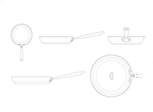 熱伝導と蓄熱性のバランスを追求した多層構造に加え、一般的なフライパンより約20%広い底面と、あえて低く設計した側面形状を採用しました。食材同士が重なりにくく、水分がこもらずにしっかり焼き付けられるため、外はカリッと中はジューシーに。ヘラの出し入れやフライ返しもしやすく、“ちょうどいい火通り”を狙いやすい一枚です。