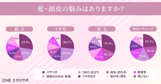 また、髪質によって悩みの現れ方には違いが見られ、一律のケアでは対処しきれない実態も浮き彫りになっています。