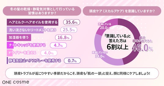 そこで今回、株式会社FoRが運営するコスメ・スキンケア・ヘアケアプラットフォーム『ONEcosme』では、20代~60代の女性100名を対象に、冬の髪や頭皮の乾燥・パサつきに関するアンケート調査を実施しました。