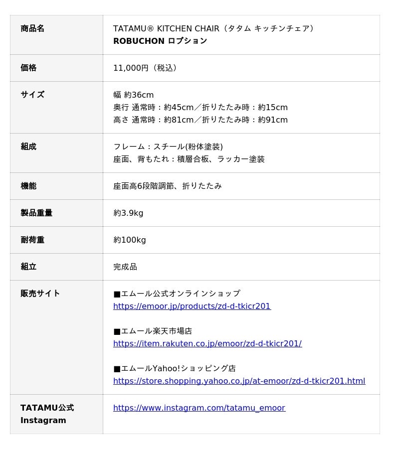人間工学に基づいた空間有用性と安全な使い心地を両立するトランスフォーム家具ブランドTATAMU(R)を展開する株式会社エムール(東京都立川市:代表取締役 高橋 幸司)は、2026年1月21日より、折りたたんでスマートにしまえる多機能チェア『ROBUCHON/ロブション(以下、ロブション)』の販売を開始しました。