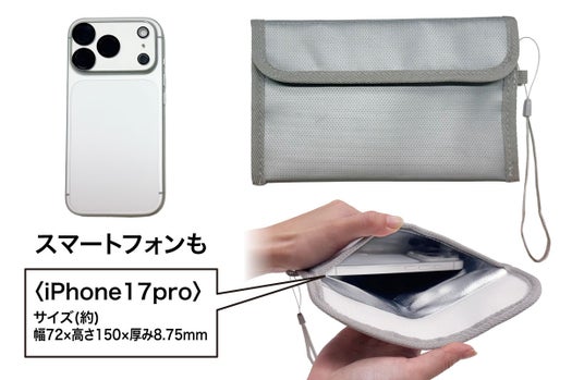 本品はモバイルバッテリーやスマートフォンをそのまま収納できるサイズに設計。